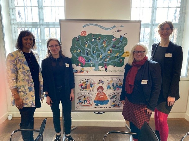 Im Oktober begrüßten wir Svenja Ossenbrüggen als neues Teammitglied. Die Prozessbegleiterin unterstützte unmittelbar bei den Vorbereitungen des Parlamentarischen Dialogs „Thüringen familienfreundlichstes Bundesland: Was können Präventionsketten dazu beitragen?“. Zusammen mit Schirmfrau und Ministerin Katharina Schenk stellten wir Vertreter:innen des Thüringer Landtages die Präventionsketten vor und warben um Unterstützung. Neben dem IKPE zeigten auch die Dezernentin Frau Lützkendorf und Präventionskettenkoordinatorin Daniela Schwarz aus Jena den Mehrwert aus der Perspektive der kommunalen Praxis auf.